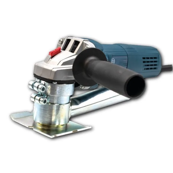 Stahl-Schutzset mit einstellbarer Frästiefe. Macht Routen und Fräsen sicher, präzise und total staubfrei. Set Inhalt = Fräser- und Staubfrei-Schutz, 4 Anschlussringe für alle gängigen Winkelschleifer, 6-Kant Schlüssel