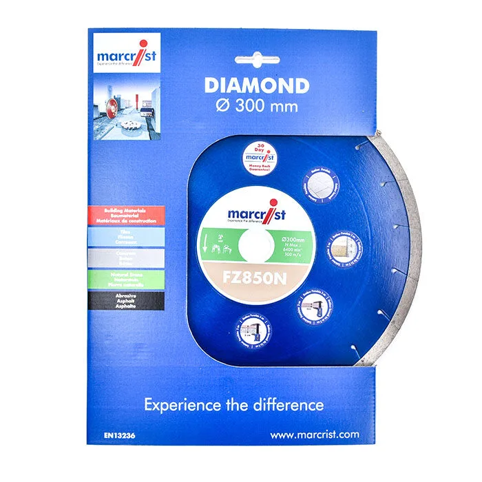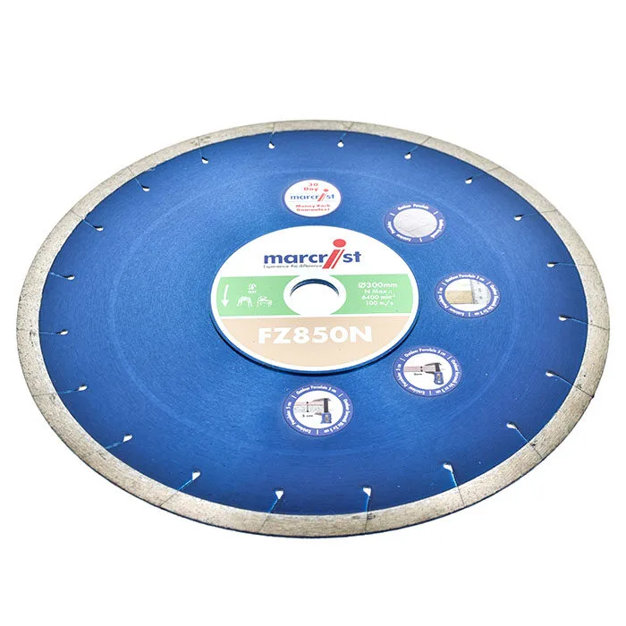 Mit der Marcrist Spezialscheibe FZ850-N kann Feinsteinzeug 20-30 mm jetzt auch problemlos auf Tisch- und Baustellensägen geschnitten werden.