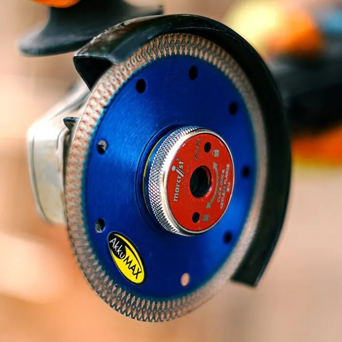 Flansche sind ein wichtiger Bestandteil der Arbeitssicherheit. Ein beschädigter oder falsch- angebrachter Flansch verursacht Vibrationen und kann sowohl die Maschine als auch die Trennscheibe stark beschädigen – es besteht Verletzungsgefahr! Mit dem Click Quick Schnellwechselflansch von Marcrist haben Sie einen robusten und sicheren Flansch, der außerdem einen einfachen und werkzeugfreien Trennscheibenwechsel ermöglicht. Erleben Sie den Unterschied!